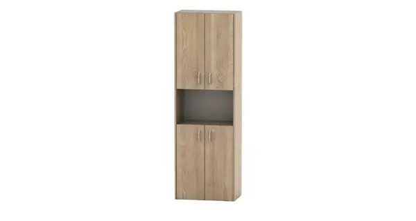 Kancelářská skříň Rozměry ŠxVxH: 57 x 175 x 34 cm Barevné provedení: dub sonoma Materiál: DTD laminovaná, ABS hrany, kovové úchyty Sektor je vhodný na zařízení kanceláří, pracoven, školních
