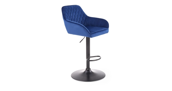 Stylová barová židle čalouněná jemnou sametovou látkou a nohami z lakované oceli v černé barvě Barva: - tmavě modrá Rozměr (šxvxh): 55 x 91 - 114 x 55 cm Materiál: Práškově lakovaná ocel a sametová látka - židle má pohodlnou tvarovanou sedačku čalouněnou jemnou látkou - má praktický stupínek i opěrky na ruce pro pohodlé posezení - podnoží i sed má výškově nastavitelný