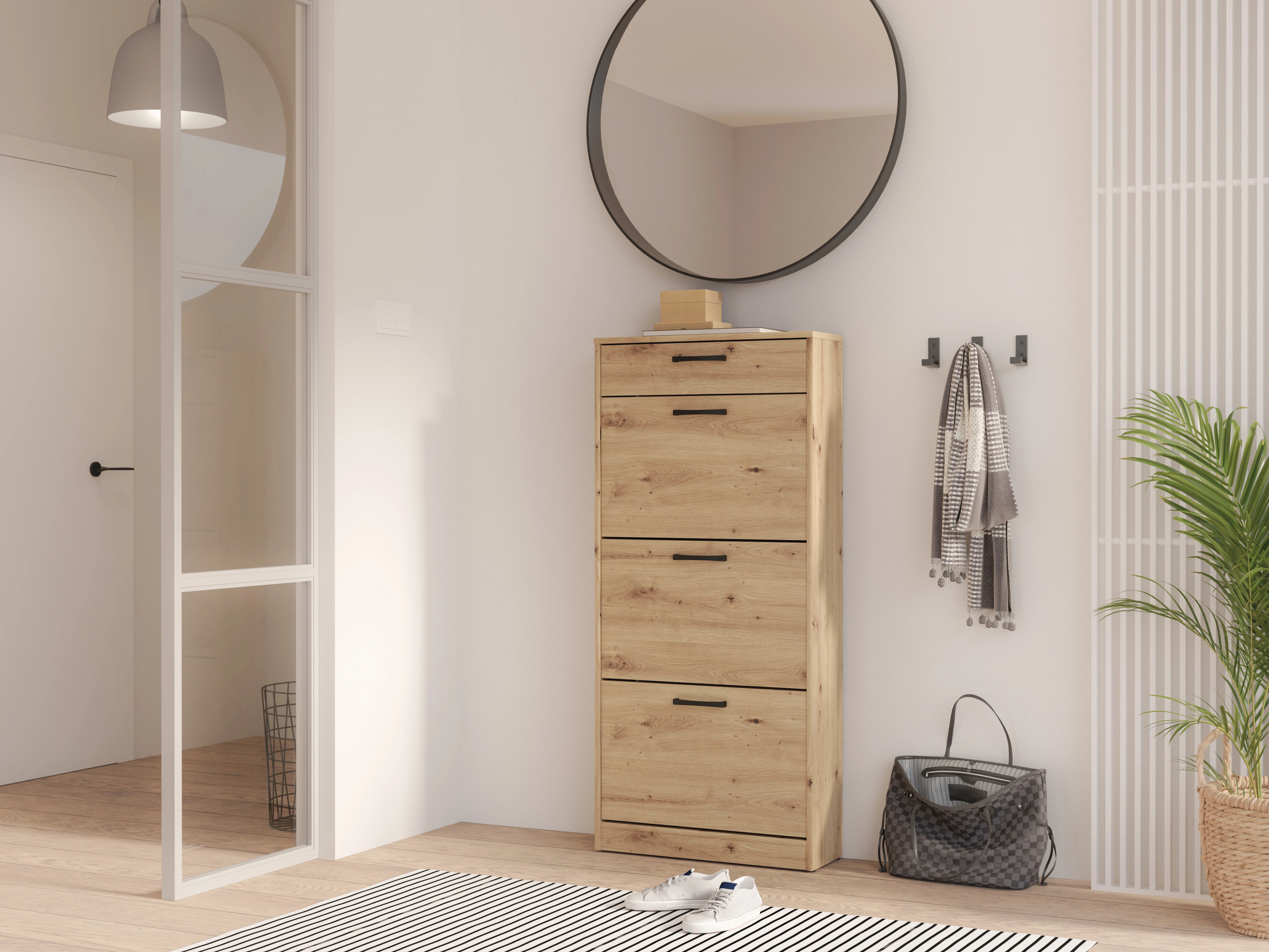 Výklopný botník se zásuvkou