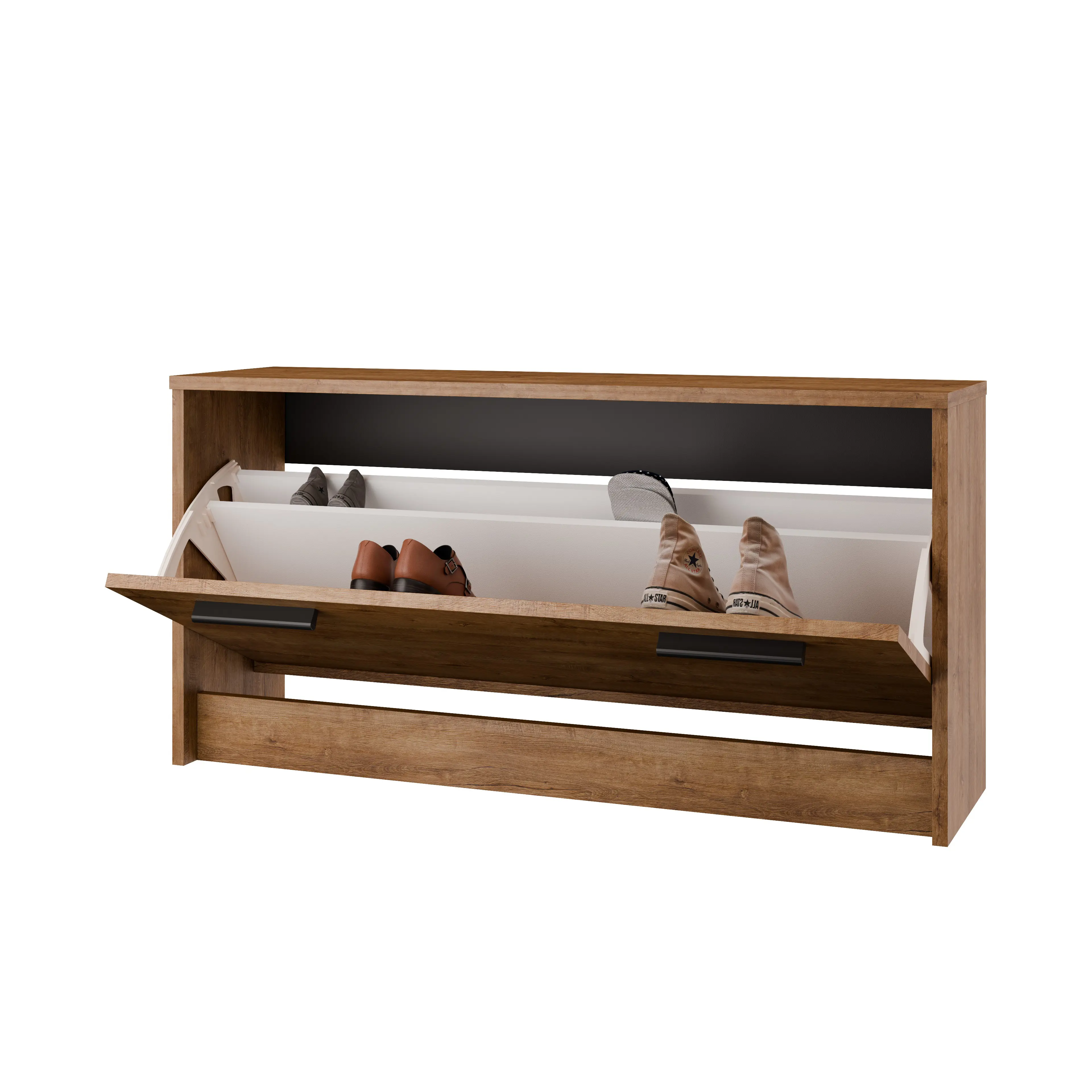 Botník Barva: dub lefkas, úchyt - černá Rozměry (šířka x výška x hloubka): 91,8 x 46,6 x 25 cm Materiál: lamino Dodáváno v demontu.