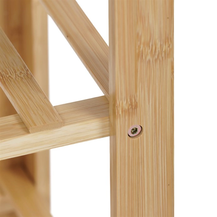 Tento elegantní botník kombinuje skandinávský styl s praktickým designem. Vyroben z masivního bambusu v přírodní barvě, nabízí dvě prostorné police pro vaši obuv.