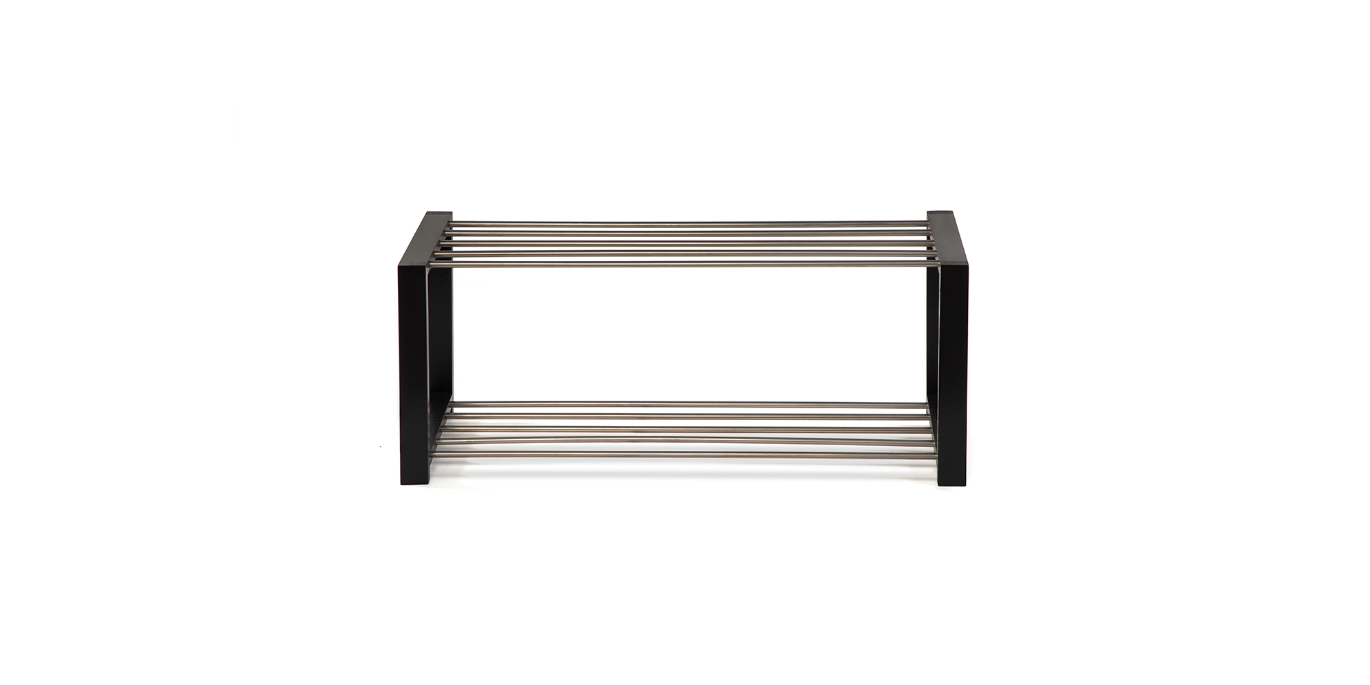Jednoduchý a praktický botník se dvěma patry pro úsporu místa. Konstrukce z pevných kovových trubek zajišťuje stabilitu a dlouhou životnost. Boční rámy poskytují pevnou oporu a zároveň elegantní vzhled. Otevřený design umožňuje dobré větrání obuvi a snadný přístup. Vhodný do předsíně, chodby nebo šatny pro každodenní použití.