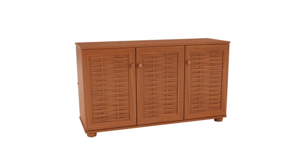 Botník, americká třešeň Botník má dvířka, za dvojtými dvířky jsou 3 police, za třetími dvířky jsou také 3 police. Barva: americká třešeň Materiál: MDF lamino Rozměry (šxhxv): 112,4 x 36,8 x 66,7 cm