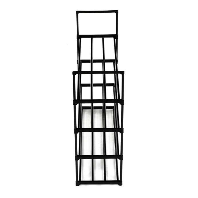 Prostorný botník nabízí elegantní a praktické řešení pro uskladnění obuvi. Černá kovová konstrukce s čtyřmi policemi pojme velké množství párů bot, takže je ideální i pro větší domácnosti. Díky otevřenému designu je obuv snadno přístupná a dobře větraná. Botník je stabilní, lehký a snadno přemístitelný, což ho činí vhodným doplňkem do předsíně, šatny či garáže.