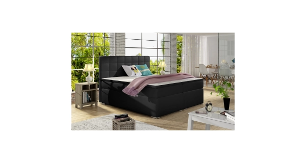 Postel boxspring 180x200 cm V ceně postele je topper. Postel má úložný prostor - viz fotografie. Další fotografie postele jsou pouze ilustrační (jiná barva)! Potahová ekokůže: Soft 11 = černá ekokůže Rozměry (šxhxv): 180x 205 x 60/117 cm Ložná plocha (šxh): 180x 200 cm Materiál: - bonellové pružiny Dodání v demontu