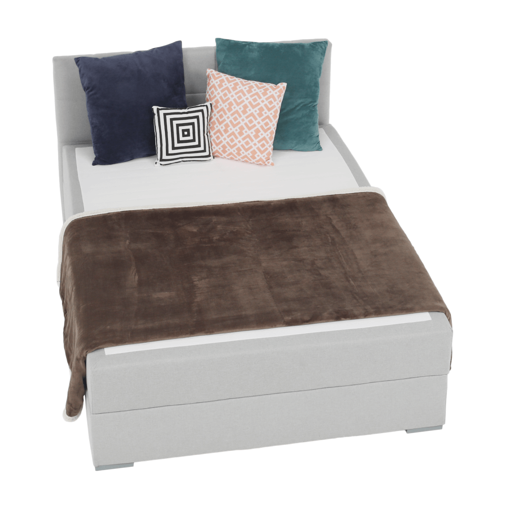 Čalouněná postel Barva: světle šedá Rozměry (šxvxh): 140 x 90 x 215 cm - výška sedu: 46 cm Materiál: - matrace s jádrem z bonelových pružin - dřevěná konstrukce - látka Colet 04 - světle šedá - oděruodolnost textilie podle testu Martindale: 50 000 oděrů - tvrdost matrace T3 se dokáže nejlépe přizpůsobit ležícímu, nevytváří protitlak a udržuje páteř v rovině. Je vhodný pro lidi s hmotností od 70 do 120 kilogramů. Tento typ se hodí ke spaní v jakékoli poloze. Nosnost 120 kg na jedno spací místo. Dodáváno v demontu.