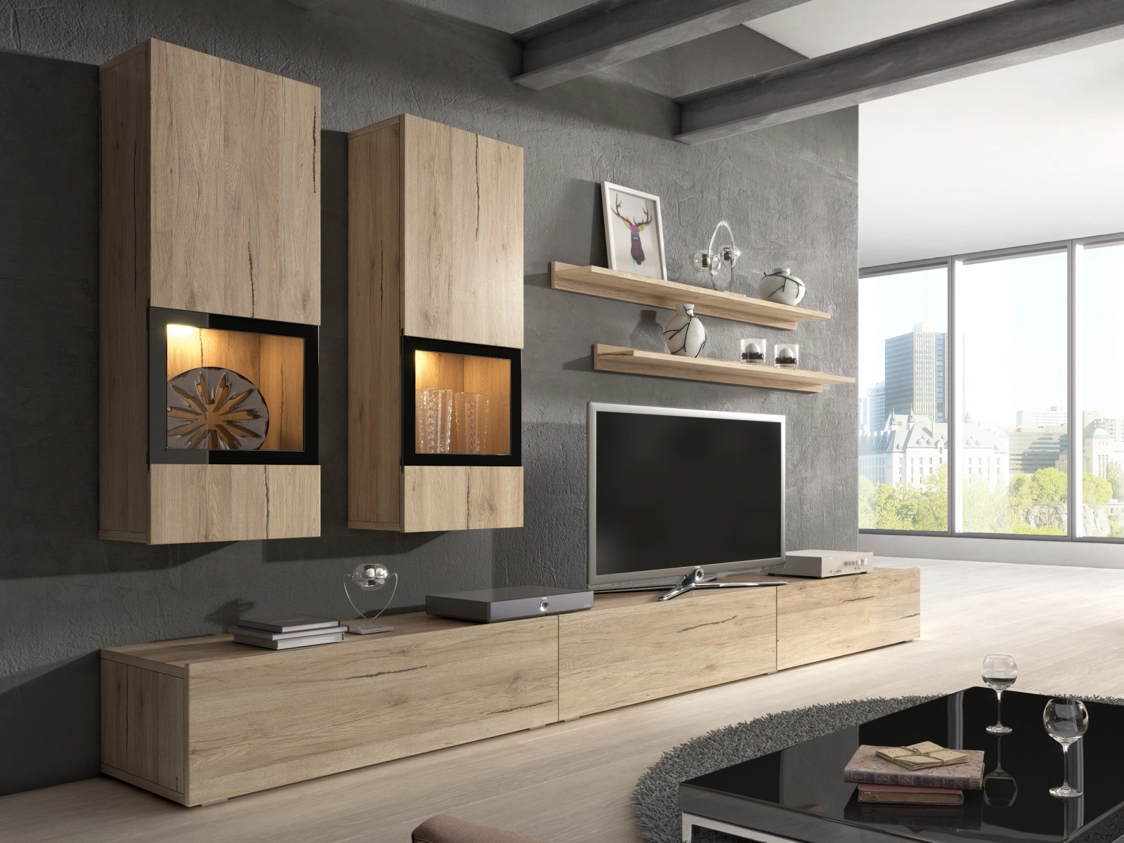 BRODIE obývací stěna, dub san remo světlý