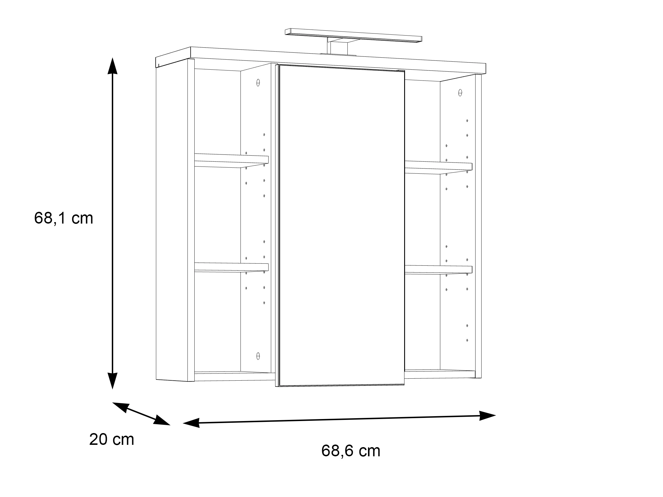 CANELU koupelnová horní skříňka se zrcadlem a osvětlením, dub sonoma/bílý lesk, 5 let záruka