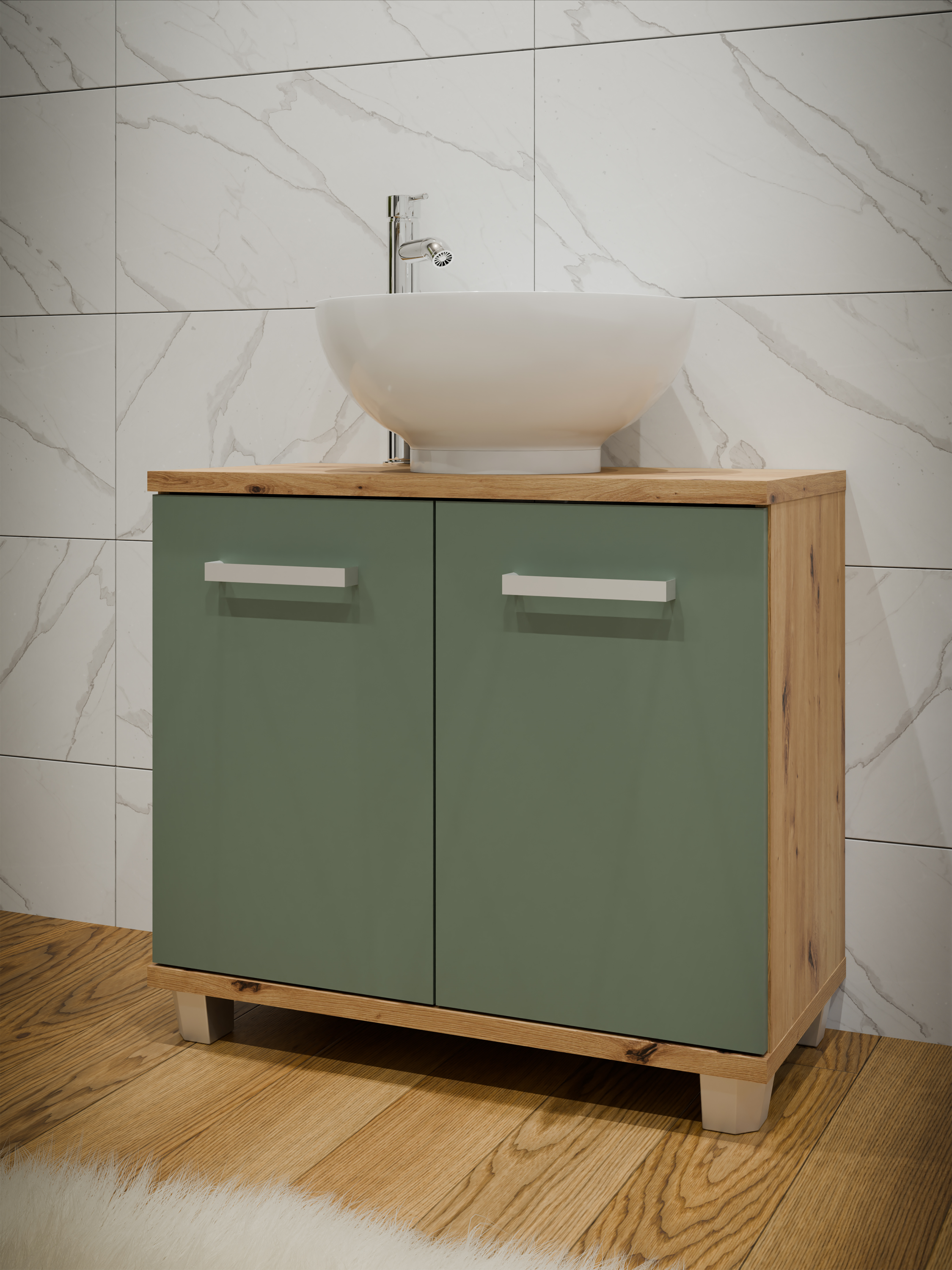 CANELU koupelnová skříňka pod umyvadlo, dub artisan/šalvěj, 5 let záruka
