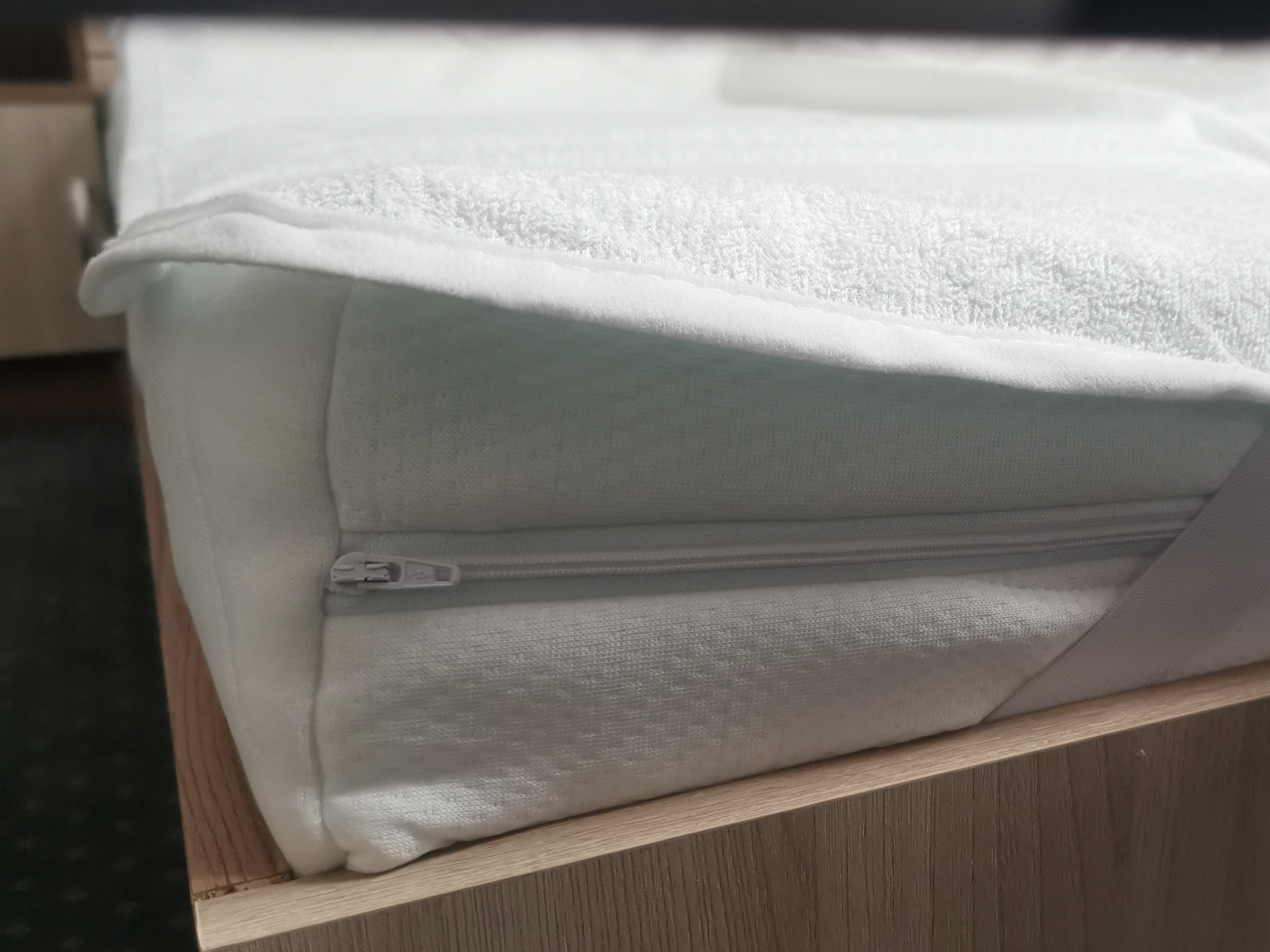 Chránič má v každém rohu gumu na zachycení o matraci.