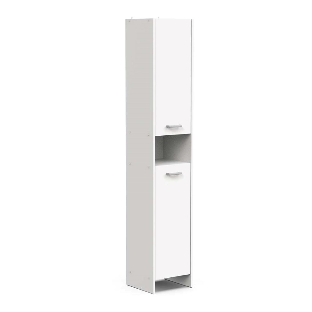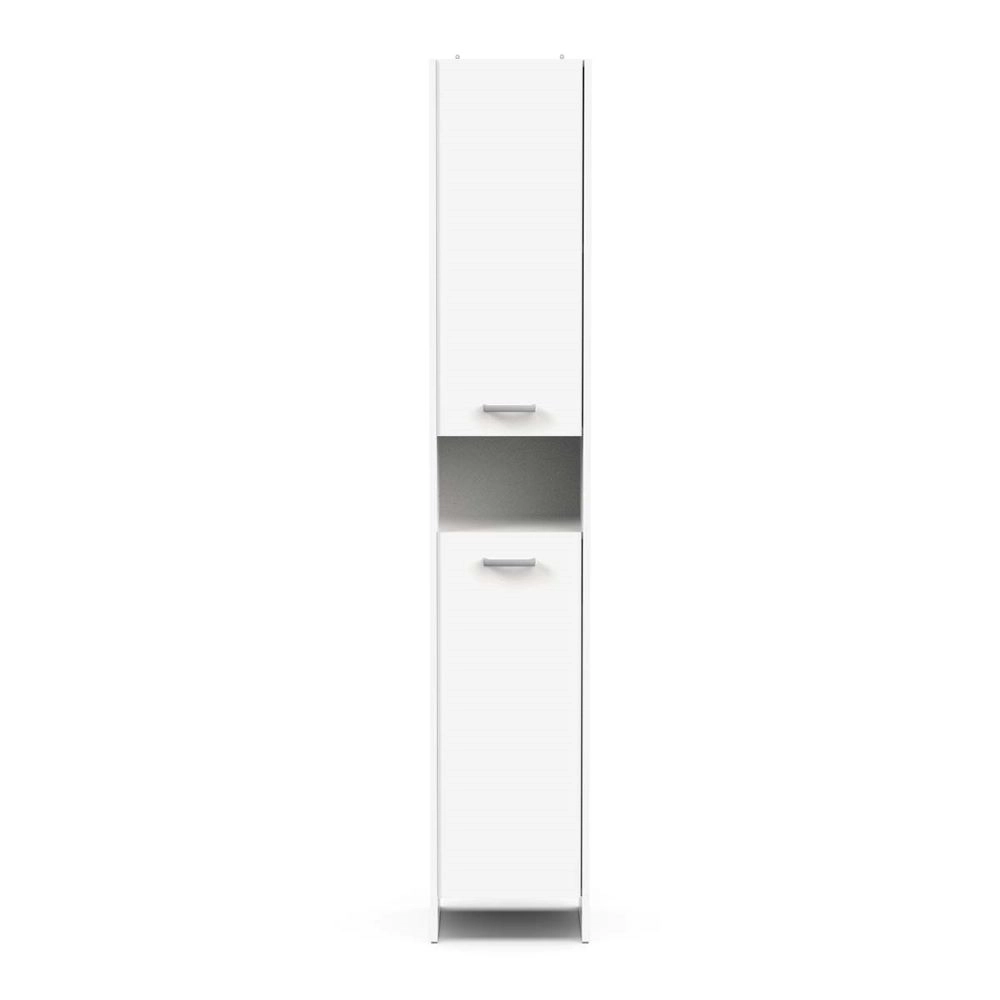 Úzká koupelnová skříňka s policemi a košem na prádlo