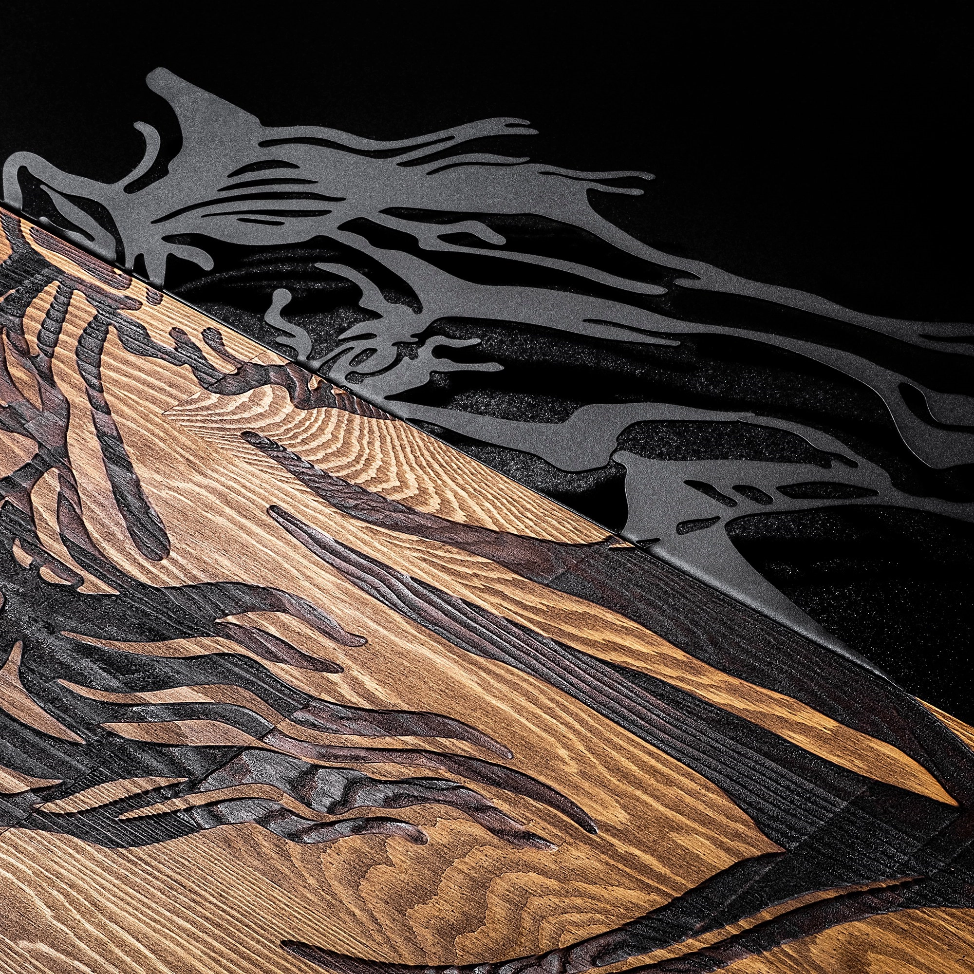Tento nástěnný doplněk je vyroben ze 100% dřevěného materiálu a jeho tloušťka 3 cm zaručuje odolnost a dlouhou životnost. Bohaté, teplé tóny ořechového dřeva krásně doplňují elegantní a moderní černé akcenty a vytvářejí podmanivý kontrast, který vaše hosty zaujme.