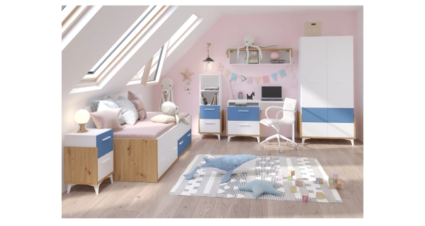 Dětský pokoj LEPON 1, dub artisan/bílá/modrá, 5 let záruka