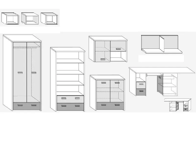 Dětský pokoj Barva: dub sonoma/světle modrá/modrá Materiál: korpus - lamino 25 mm, barevné dvířka - lamino 16 mm, ABS hrana 0,6 mm Úchytky jsou vyrobeny z tvrzeného PVC. Součástí sestavy je