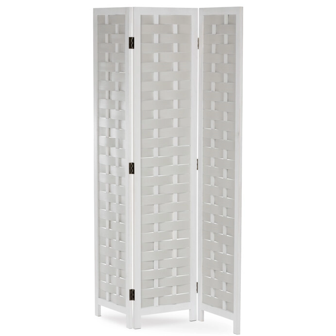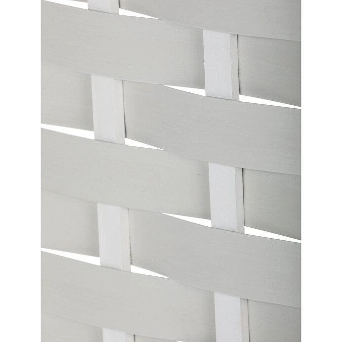 Třídílný paraván vyrobený z masivního smrkového dřeva v bílé barvě nabízí praktické řešení pro rozdělení prostoru či vytvoření soukromí. Jeho pevné rámy jsou doplněny propletenými PVC pásky, které vytvářejí zajímavý vzor a zároveň propouštějí světlo. Díky skládací konstrukci s kovovými panty je možné paraván snadno přemístit a přizpůsobit podle potřeby. Přírodní povrchová úprava zdůrazňuje texturu dřeva a umožňuje snadnou údržbu. Rozměry jednotlivých dílů jsou navrženy tak, aby paraván stabilně stál a zároveň byl dostatečně lehký pro manipulaci. Rozměr jednoho dílu 40x171cm.