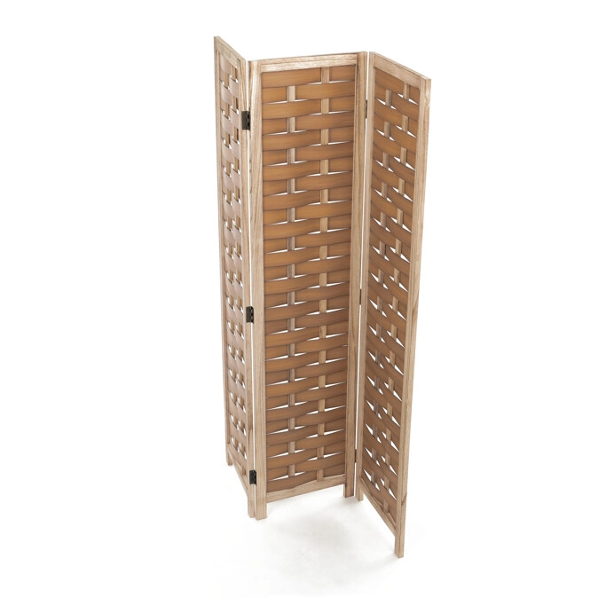 Dřevěný třídílný paraván ELELHAL, masiv smrk, přírodní odstín