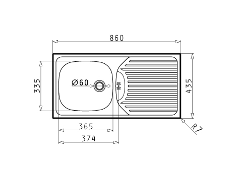 Nerezový dřez Obvodový rozměr dřezu: 860x435 mm Dřez není celoplošný, je nutno pod něj dokoupit pracovní desku. Rozměr dřezové nádoby: 365x335x150 mm Minimální šířka skříňky: 500 mm Průměr odpadu: 60 mm Materiál: Cr Ni 18/10 Tloušťka: 0,6mm - 0,68mm Horní přepad. Dřez je reverzibilní (univerzální provedení) - dřezovou nádobu lze umístit vpravo i vlevo V ceně dřezu je započtena kompletní zápachová armatura s přípojkou na pračku (myčku) a montážní příslušenství. Systém EASY FIX - Polyuretanové těsnění nalepené po celém obvodu dřezu. Usnadňuje a šetří čas při montáži. Záruka 24 měsíců.
