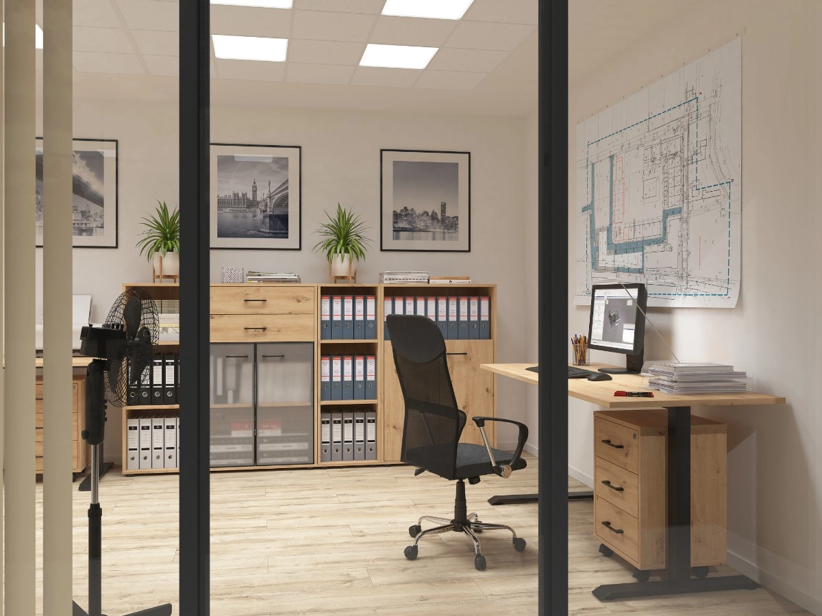 Psací stůl - zajímavostí celého stolu je elektronické polohování - pamatuje si až čtyři různé výšky (v rozsahu od 72 - 120 cm) - pokud stůl používá více osob, může si každý upravit výšku desky stolu podle svých preferencí - součástí je také USB vstup Materiál: lamino silné 22 mm/kovové nohy Barva: dub artisan Rozměry (šxvxh): 160 x 72-120 x 90 cm