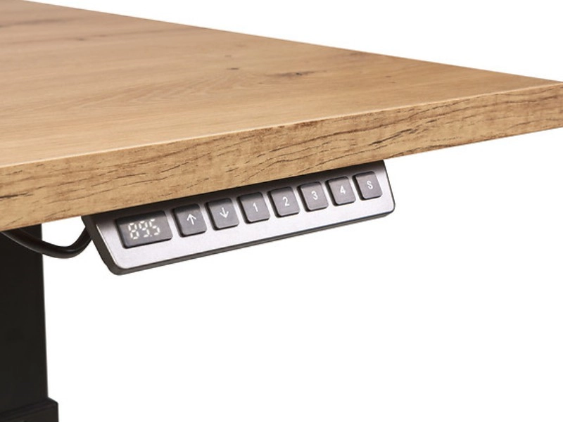 Psací stůl - zajímavostí celého stolu je elektronické polohování - pamatuje si až čtyři různé výšky (v rozsahu od 72 - 120 cm) - pokud stůl používá více osob, může si každý upravit výšku desky stolu podle svých preferencí - součástí je také USB vstup Materiál: lamino silné 22 mm/kovové nohy Barva: dub artisan Rozměry (šxvxh): 160 x 72-120 x 90 cm