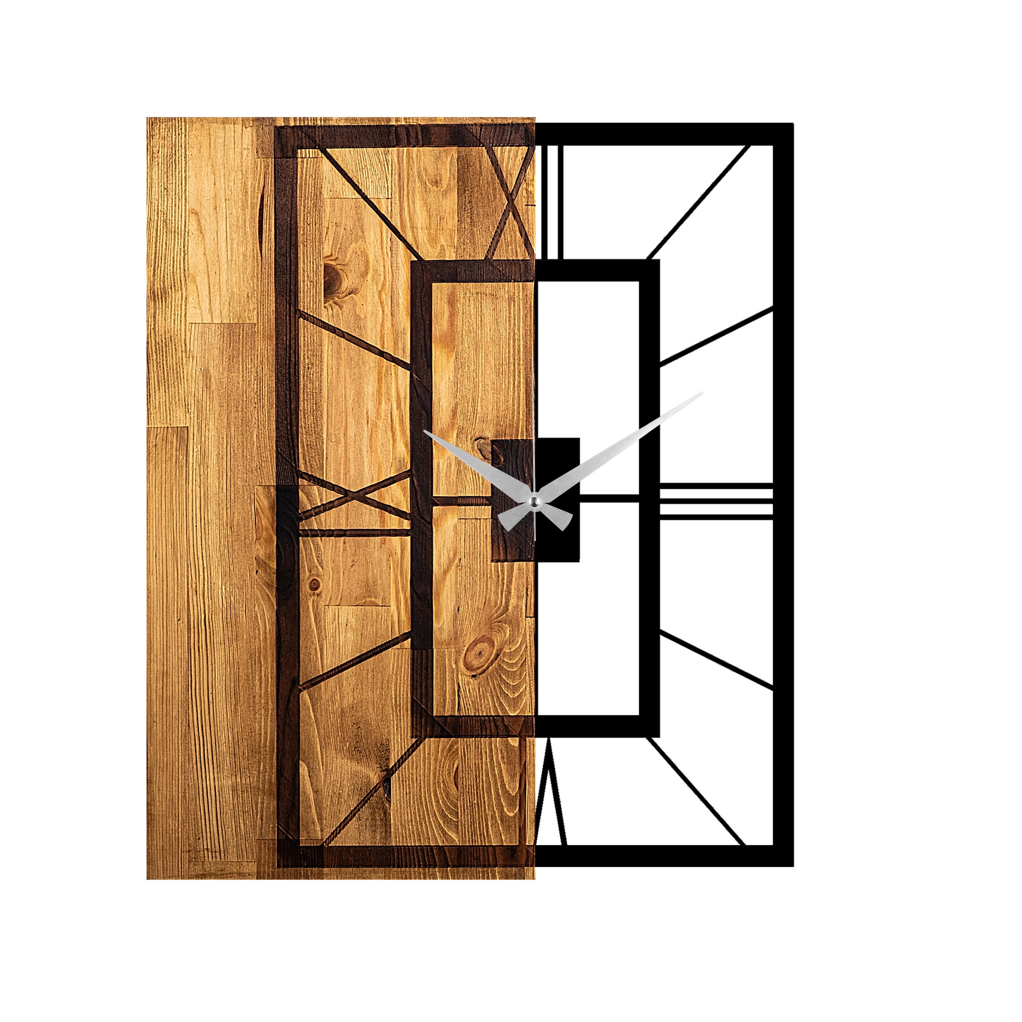Tyto hodiny jsou vyrobeny ze 100% dřevěných a kovových komponentů a mají tloušťku dřevěného rámu 3 cm a kovových akcentů 1,5 mm. Kombinace těchto materiálů vytváří úžasný kontrast, který dodá hloubku a charakter každé místnosti.