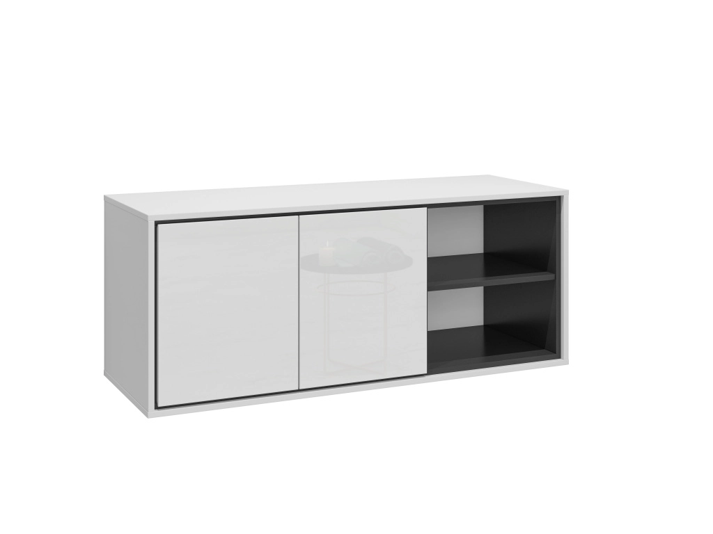 Závěsná skříňka pod umyvadlo s policemi Barva: - korpus: bílá/černý onyx - dvířka: bílý lesk Materiál: - korpus: lamino 15 mm - dvířka: MDF 16 mm Rozměry (šířka x výška x hloubka): 120 x 51 x