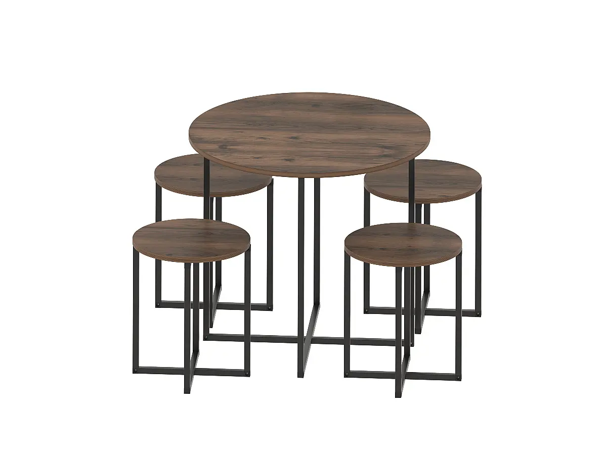 Jídelní set - stůl + 4 stoličky Rozměry (šířka x výška x hloubka): - stůl - 80 x 73,8 x 80 cm - stolička - 40 x 47,8 x 40 cm Materiál: kov, lamino 18 mm Barva: černá/lydia Dodáváno v