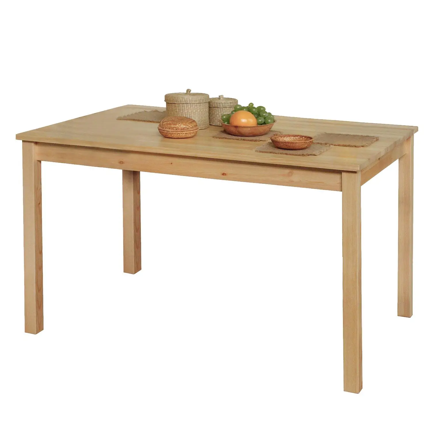 Jídelní stůl Rozměry stolu (šxhxv): 118 x 75 x 75 cm Materiál: borovicový masiv, nelakované provedení = přírodní masiv bez úpravy Dodává se v demontu.
