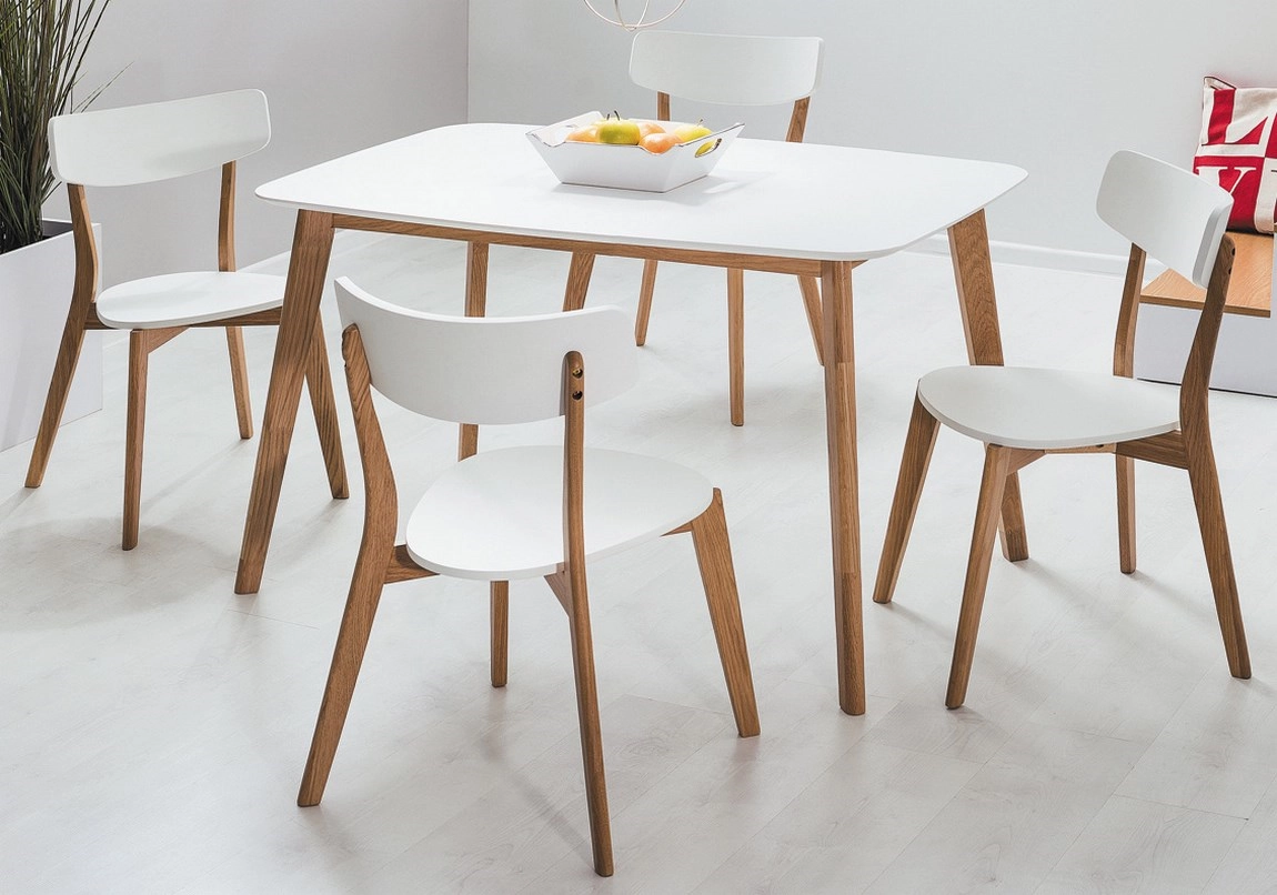 Jídelní stůl Jídelní stůl ve stylu Scandinavian. Deska stolu je vyrobena z kvalitní MDF v kombinaci s přírodní dýhou v bílé barvě, nohy stolu jsou z masivního dřeva - dub. Výška: 75 cm Šířka: 120 cm Hloubka: 75 cm Barva: dub Barva podrobně: dub-bílá Materiál: dřevo / masív, přírodní dýha, MDF Dodáváno v demontu.
