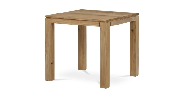 Jídelní stůlMateriál: deska stolu je vyrobena z dubové průběžné spárovky, nohy jsou z dubového masivu; větší póry, suky a prohlubně jsou vyplněné dekorativním černým tmelem (viz foto) Barva: dubRozměry
