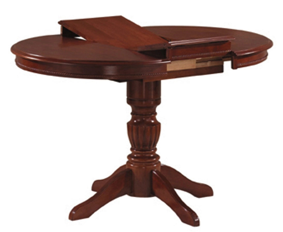 Jídelní stůl rozkládací Elegantní jídelní stůl v rustikálním duchu. Zajímavý vzhled stolu vyzdvihují jemné tvary a dokonalými detaily. Tento kulatý stůl je vyrobený z kvalitního přírodního dřeva v barevném provedení - tmavý ořech. Plocha před rozložením je 90 x 90 cm, po rozložení 90 x 125 cm. Výška stolu je 75 cm. Stůl je určený pro 4 osoby. Výška: 75 cm Šířka: 90 - 125 cm Hloubka: 90 cm Barva: ořech jádrový Materiál: dřevo / masív Dodáváno v demontu, záruka 24 měsíců.