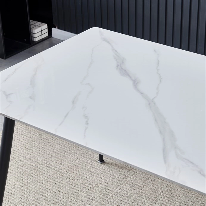 Dopřejte si příjemné posezení u jídelního stolu Autronic s luxusním mramorovým dekorem, který jemně zdobí povrch a dodává mu nádech elegance. Bílá deska ze slinuté keramiky s matnou povrchovou úpravou připomíná moderní industriálního styl.