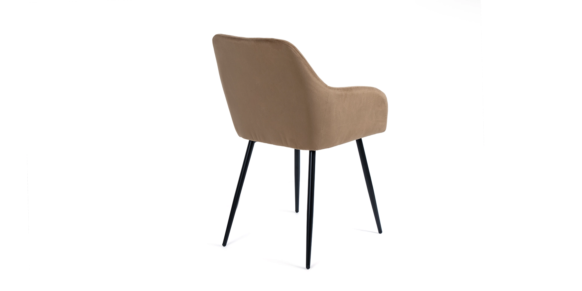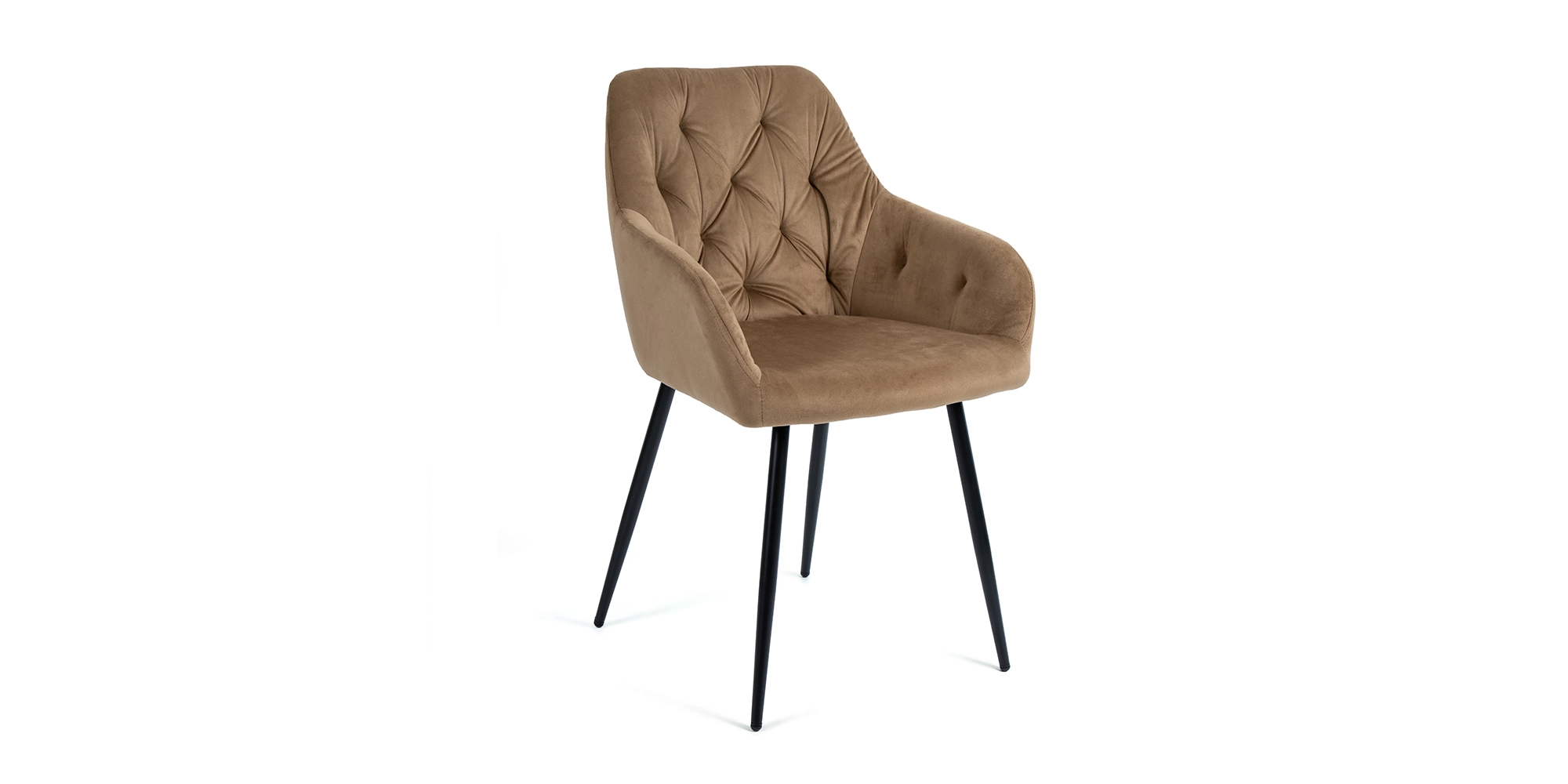 Elegantní židle s područkami a moderním designem. Pohodlné čalounění v béžovém sametu s dekorativním prošíváním. Stabilní kovové nohy v černém provedení. Skvěle doplní jídelnu, pracovnu či obývací pokoj. Spojuje komfort, styl a luxusní vzhled.