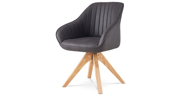 Tato židle / polokřeslo s područkami zaujme milovníky skandinávského a retro stylu. Potah otočné židle je z látky v dekoru broušené kůže v trendové šedé barvě a díky čalounění z PU pěny je i velmi pohodlná. Stabilní podnož je zhotovena z kovového kříže s otočným mechanismem a nohami z masivního kaučukovníku v přírodním odstínu. Dopřejte si do svého bytu originální židli z této kolekce. Rozměr (šířka x hloubka x výška): 62 x 61 x 83 cm Výška sedu: 48 cm Dodáváno v demontu, záruka 24 měsíců.