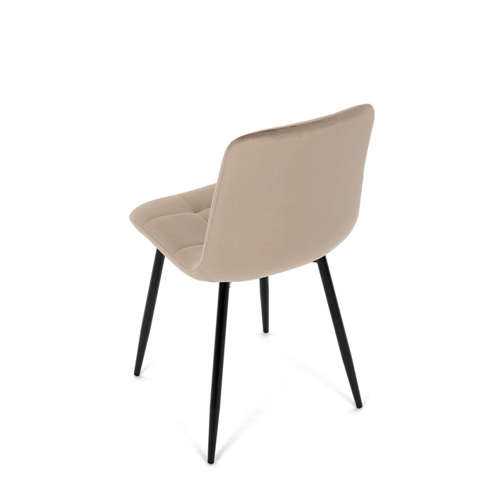 Jídelní židle v elegantní krémové barvě je ideální volbou pro stylové interiéry. Čalounění ze sametové látky působí luxusně a zajišťuje pohodlí při sezení.