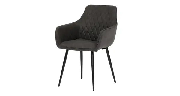 Jídelní židle s kovovými nohami a efektivním prošitím ve tvaru diamantu.Materiál: látka/PU pěna/kov Barva: černáRozměry (šxvxh): 57 x 83 x 60 cm- rozměry sedu (šxvxh): 41 x 48 x 43 cm- područky ve výšce