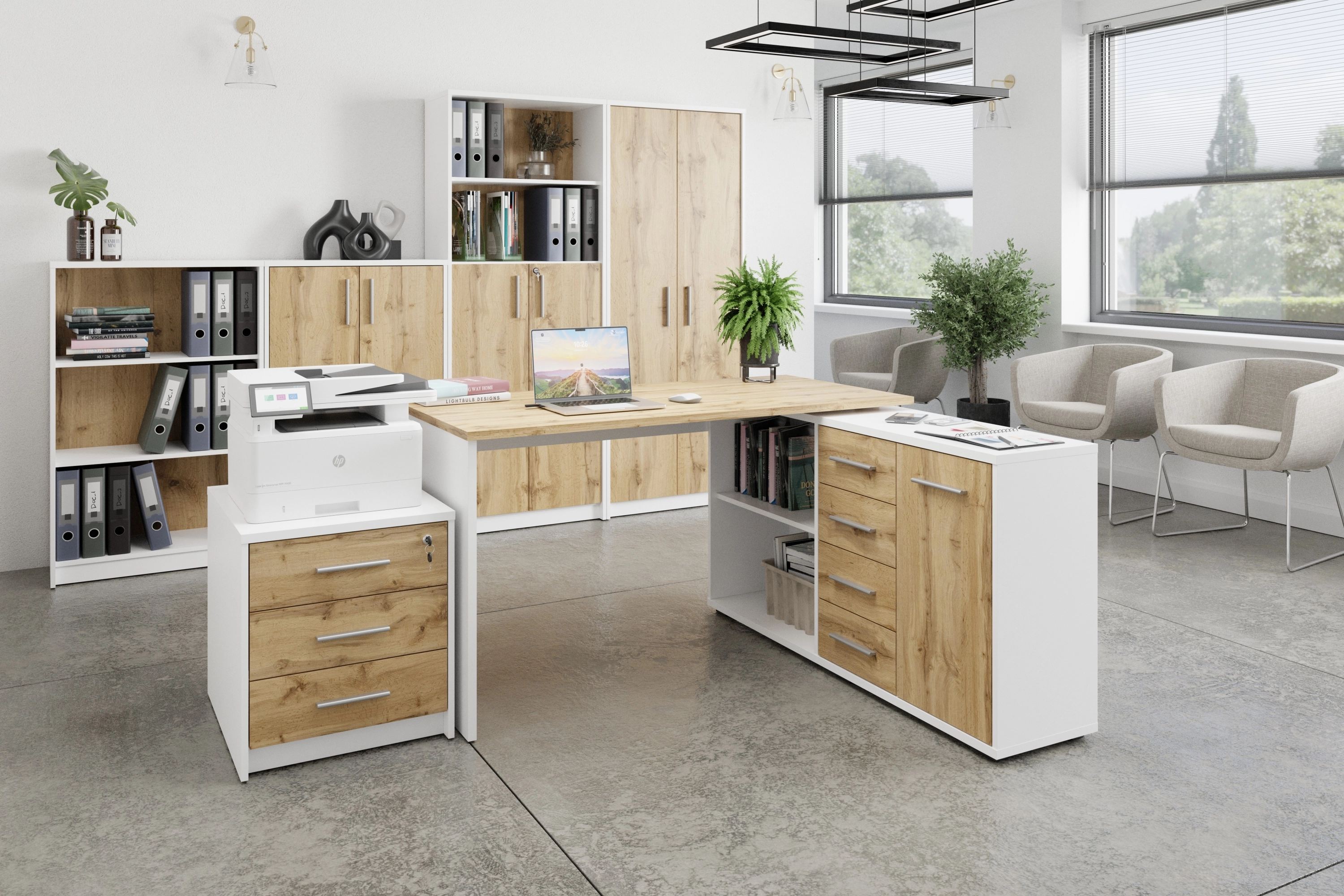 Kancelářská sestava NEJBY GIANNI 3, bílá/dub wotan