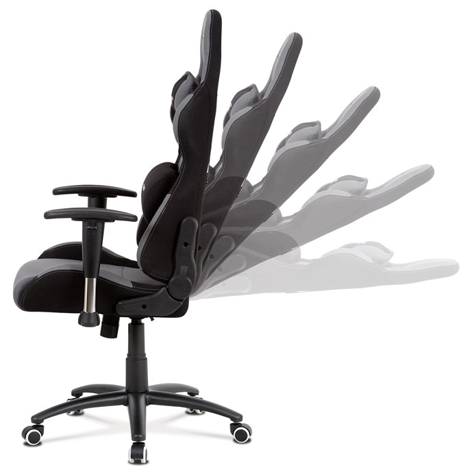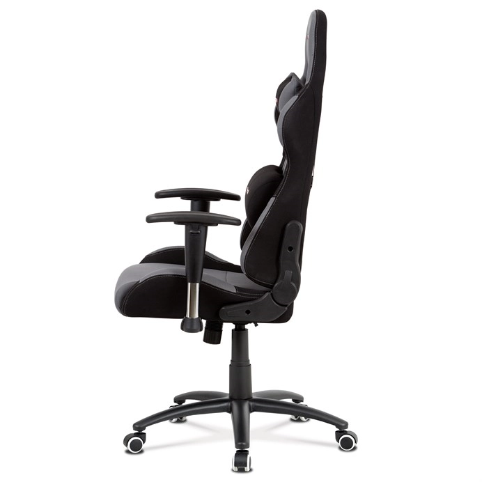 Kancelářská židle Moderní kancelářská židle ve sportovním designu v šedé látce s černými detaily. Nosnost 130 kg. Rozměry (šxhxv): 66 x 70 x 130-136, výška sedu 46-52 cm, synchronní mechanismus, kříž plastový.