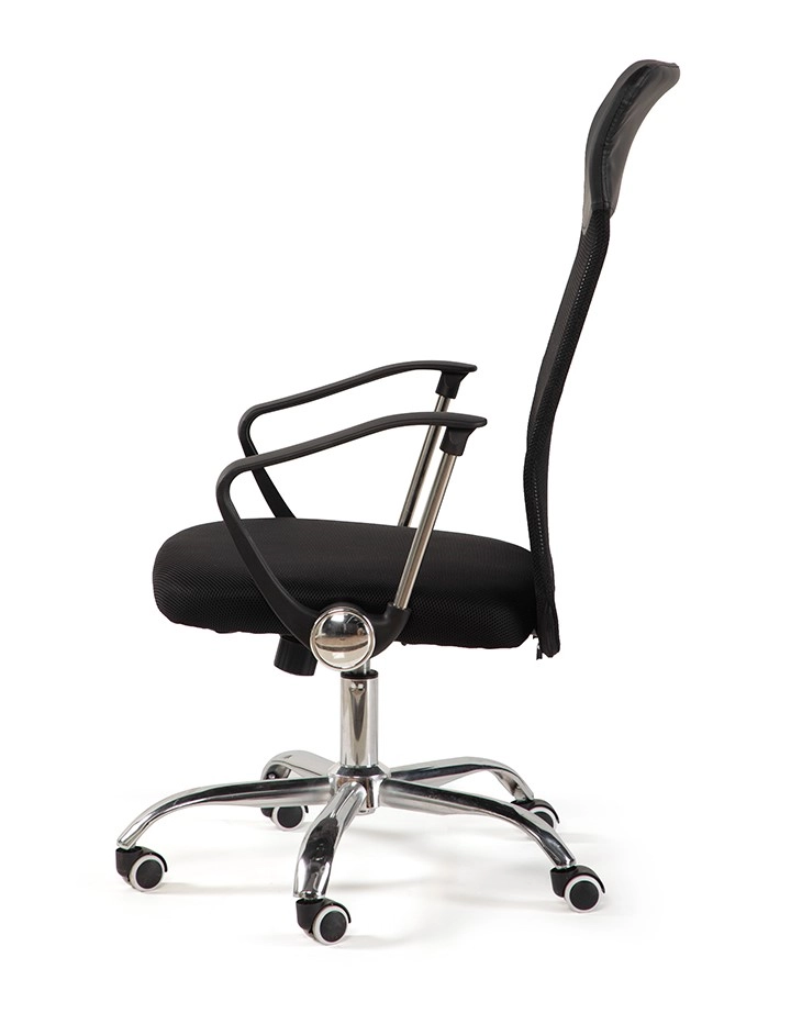 Stabilní chromová základna s kolečky zaručuje hladký pohyb po kanceláři i dlouhou životnost.