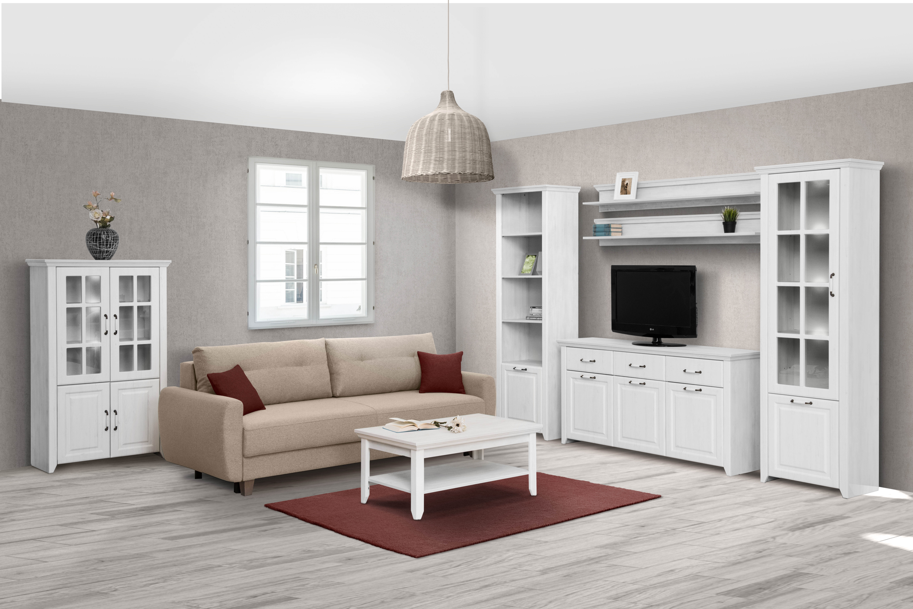 Knihovna PICARDIE, rustic bílá