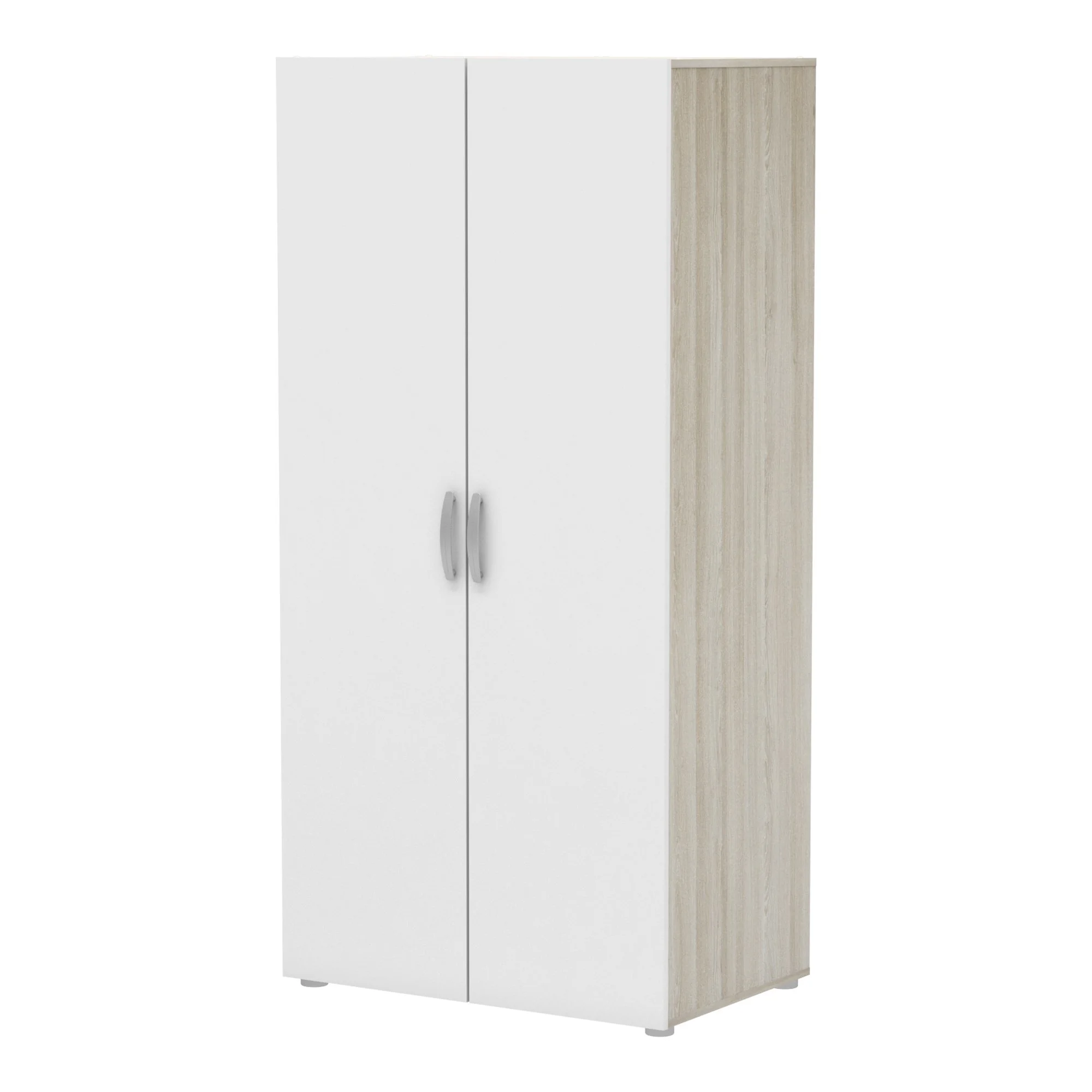 Dvojdvéřová skříň se šuplíkem Barva: dub shannon/bílá Materiál: lamino 14 mm Rozměry (šxhxv): 82 x 38 x 166 cm Materiál nožek: plast-hliníkové panty- tři police z nichž dvě jsou nastavitelné do třech