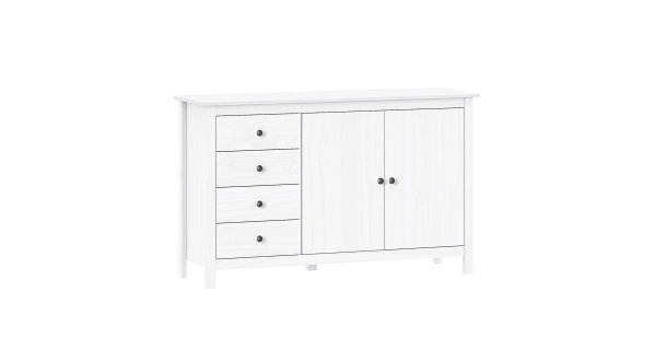KomodaMateriál: masiv boroviceBarevné provedení: bílý lak- 4 zásuvky s kovovými pojezdy, 2 plné dveře, 1 police- kovové úchytkyRozměry (šxvxh): 150 x 80 x 40 cmDodáváno v demontu.