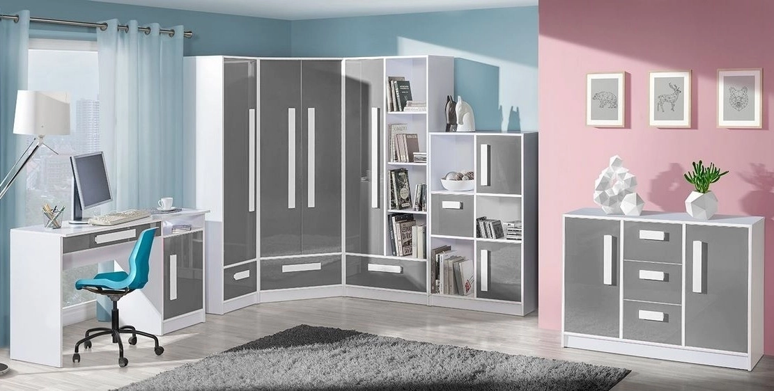 Komoda BLOURT 2D1S, bílá/šedý lesk