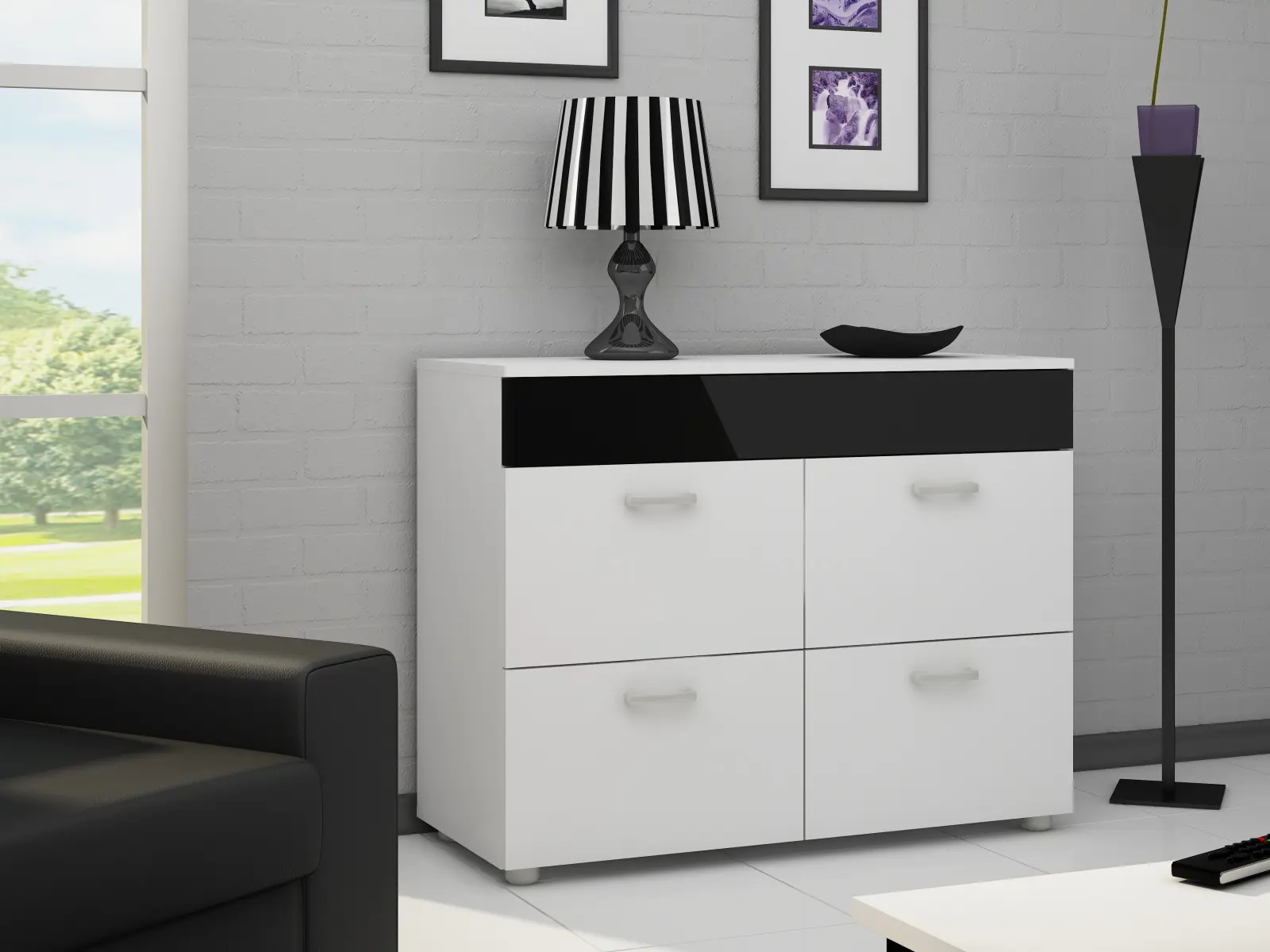 Komoda FARGONA, bílá/černý lesk