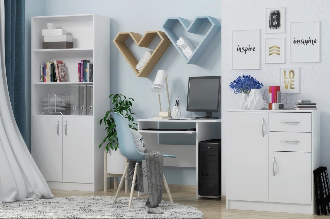 Komoda dvoudveřová v moderním provedení. Korpus i dvířka jsou z kvalitní LTD v barvě bílá. Lamino je odolné vůči vysokým teplotám, poškrábání a nárazům, hraněné ABS páskou. Jasně viditelná struktura dřeva.