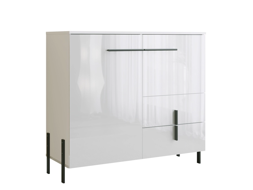 Barva: korpus - bílá, dvířka - bílý lesk, úchyt - černá, nožky - černá