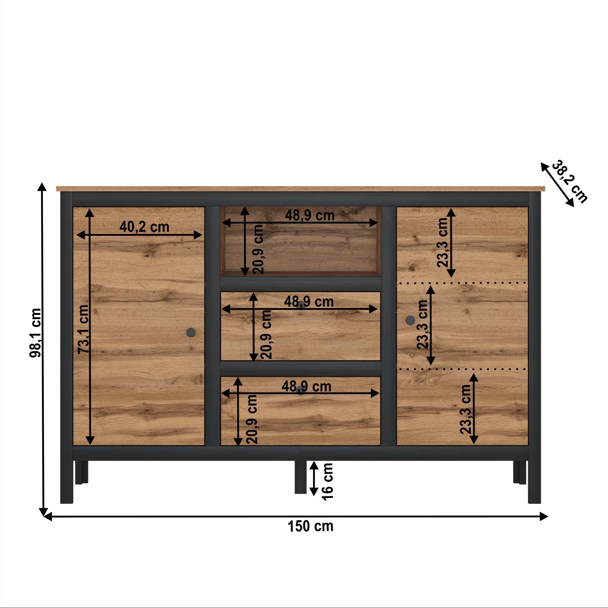 Komoda MARZIALE 2D2S, dub wotan/černá