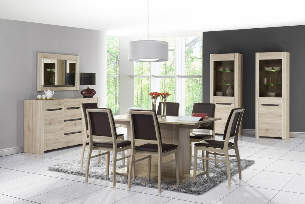 Tento moderní nábytek je součástí sestavy určené do jídelny nebo obývacího pokoje.