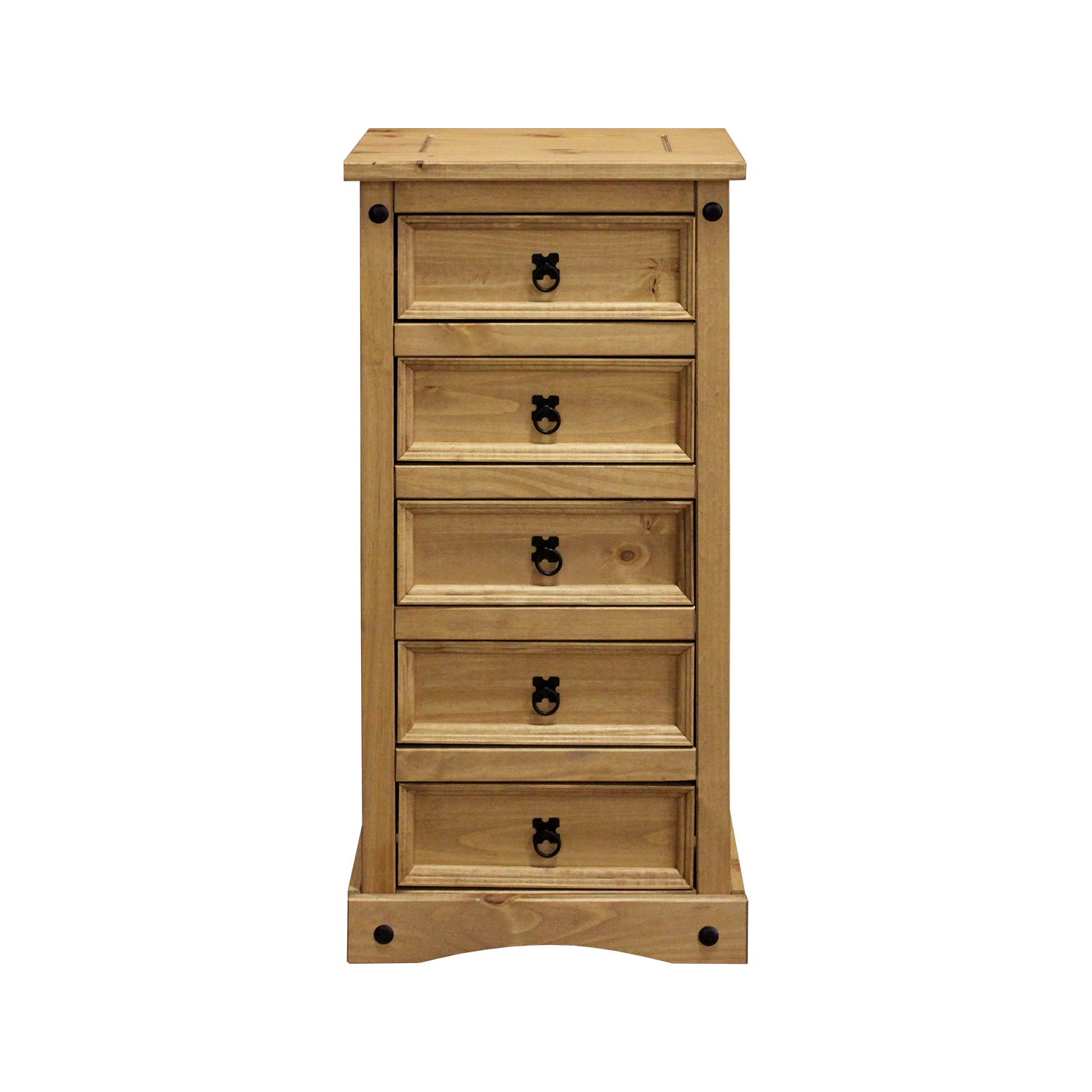 Komoda s 5 zásuvkami Barva: medový odstín Rozměr (šxvxh): 53 x 109 x 39 cm Materiál: masiv borovice - 5 zásuvek s kovovými úchytkami a pojezdy Dodání v demontu.