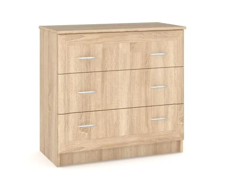Komoda se třemi šuplíky Barva: dub sonoma Rozměry (šxvxh): 80,5 x 77 x 38 cm Materiál: LTD deska s MDF prvky, úchytky - plast Dodání v demontu.