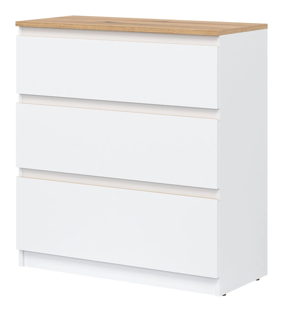 Komoda se zásuvkami ze sektorové řady.Barva: bílá/dub evokeMateriál: laminoRozměry (šxvxh): 78 x 84 x 35 cmDodáváno v demontu.
